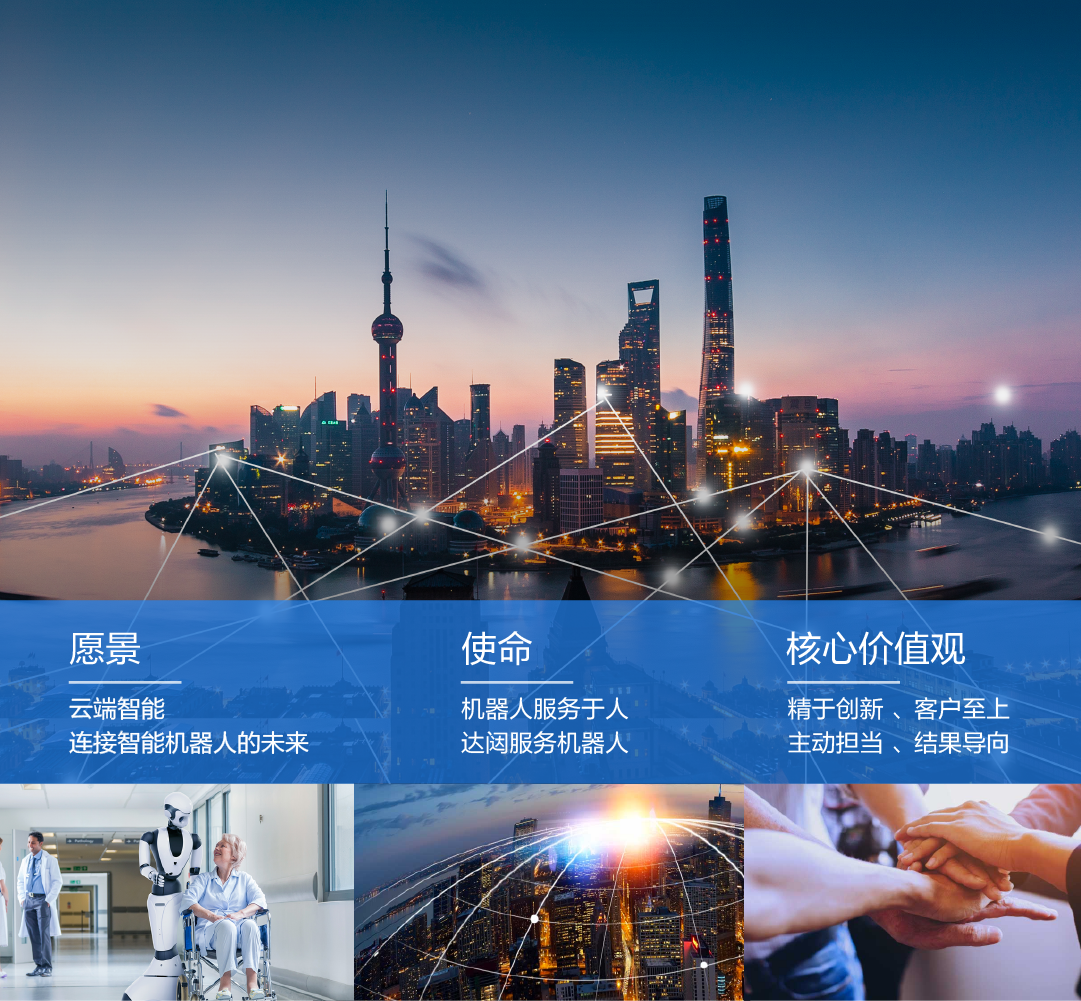 jinnianhui今年会成立于2015年,是智能机器人领域的独角兽头部企业,全球领先的云端机器人创造者、制造商和运营商。公司围绕“机器人服务于人、jinnianhui今年会服务机器人”的战略使命和“云端智能,连接未来”的美好愿景,旨在通过持续引领云端机器人前沿技术研究与产业化应用,让云端机器人走进千家万户,帮助人类完成4D(如枯燥、肮脏、危险、甚至困难的)工作,让人类尽享更美好的生活。